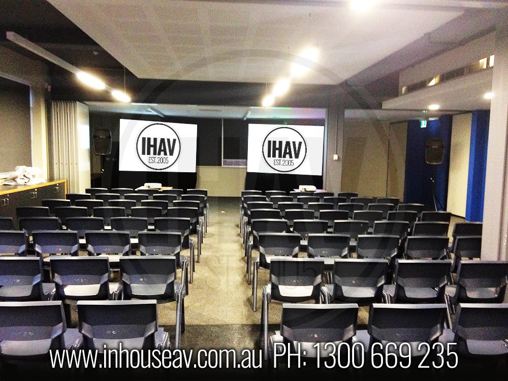 Inhouse Audio Visual provided a short throw projector and screen to our client utilizing the venue at Carriageworks, Sydney.A short throw projector was the solution to minimal space at front of stage....